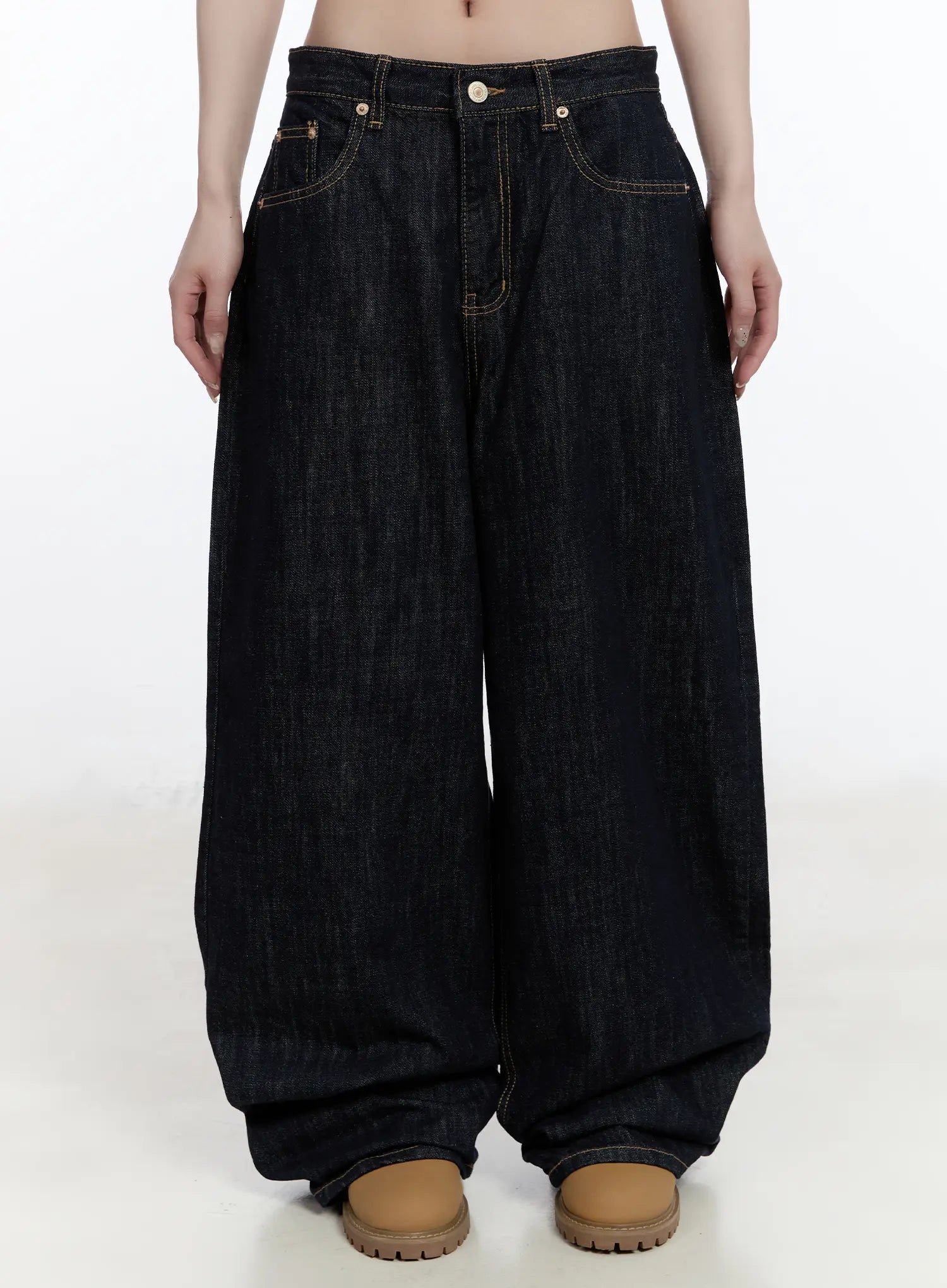 These denim jeans are constructed with a structured waistband, belt loops, and reinforced seam stitching for durability. The denim fabric provides a firm surface with moderate flexibility depending on movement. The design includes standard front and back pockets with consistent placement. The leg cut varies across straight, tapered, or wide configurations, defining the overall silhouette and fit. The rise level determines waist positioning and comfort during wear. These jeans are suitable for indoor and outdoor use, including daily activities, casual outings, or extended wear. They pair with tops, shirts, or outerwear. The defined denim structure and stitched construction distinguish them from softer fabric pants.